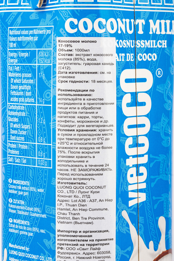 Молоко Кокосовое 17-19% «Vietcoco» (Вьетнам) - 1л