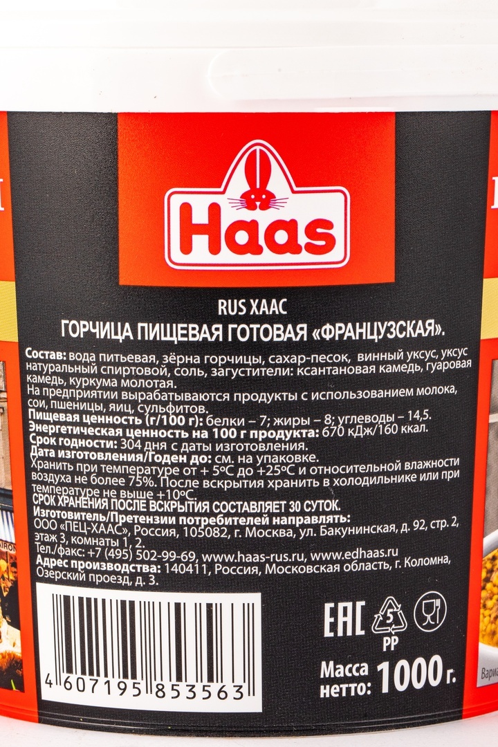 Французская зернистая горчица Haas — идеальное дополнение к вашим блюдам. Придаст пикантный вкус и аромат соусам, маринадам и готовым блюдам. Прекрасно сочетается с мясом, рыбой и овощами. Удобная упаковка 1кг подойдёт для частого использования.