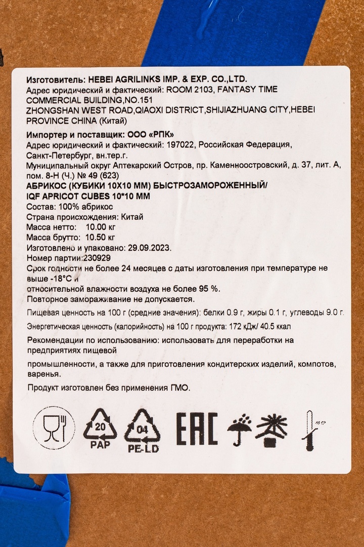 Абрикосы Половинки Замороженные Китай 10кг