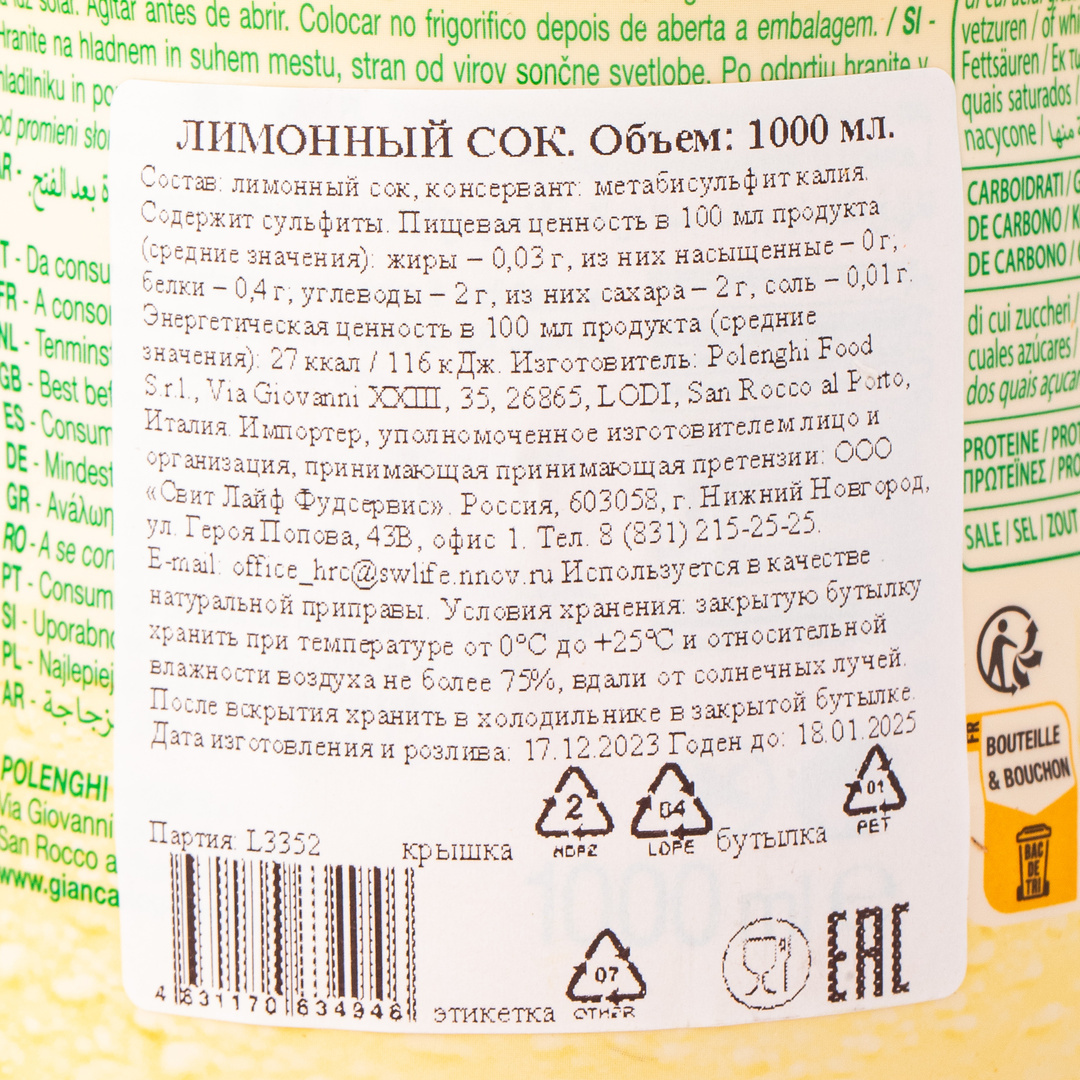 Для приготовления вкусных и ароматных маринадов используйте концентрированный сок лимона Polenghi из Италии. Он придаст вашим блюдам яркий вкус и свежесть. Идеально подходит для маринования мяса, рыбы и овощей перед запеканием или грилем.