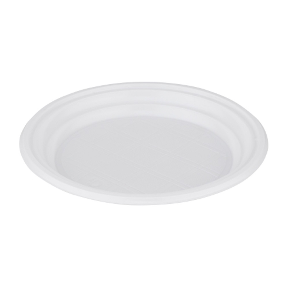 Тарелка белая десертная без секционная, диаметр 205мм, изготовлена из полипропилена.