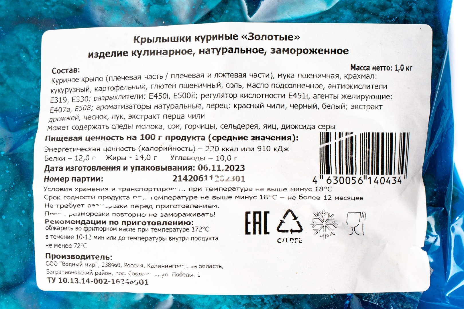 Куриные крылышки в панировке - уже ставшая традиционной закуска, которая пользуется популярностью во всем мире. Преимущества: Под золотистой хрустящей корочкой нежное и сочное мясо. Дополненные специями куриные крылышки несомненно придутся вам по душе. Применение: Используется как самостоятельное блюдо с добавлением гарнира или в качестве закуски. Рекомендации: Замороженный полуфабрикат обжаривать во фритюрном масле при Т 168°С в течение 8 мин.