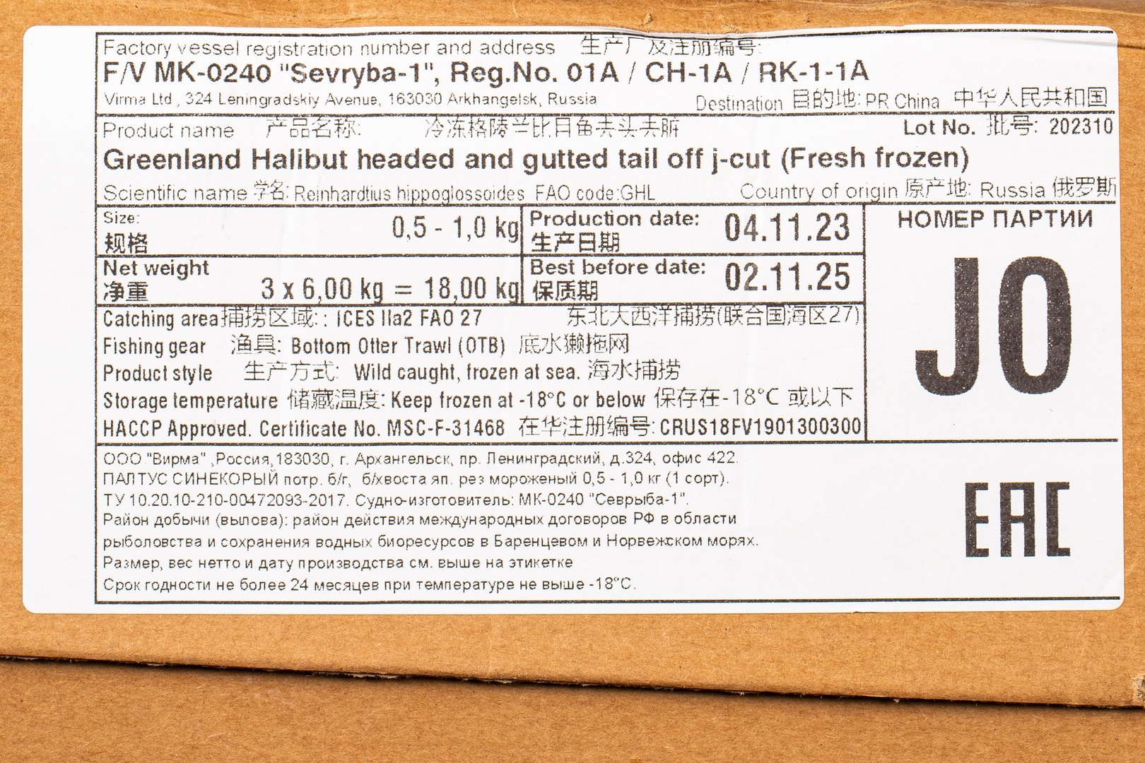 Палтус Потрошеный без Головы Свежемороженый 0,5-1кг 21кг
