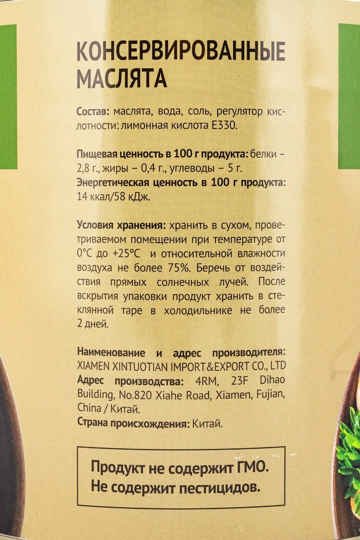 Маслята Консервированные Китай 2,84кг Сух. Вес 1,8кг