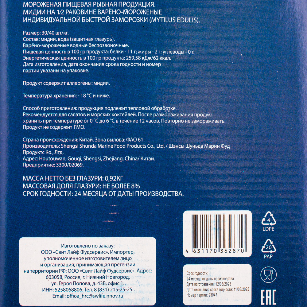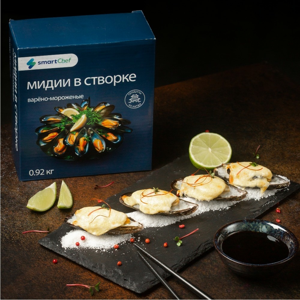 Популярный морепродукт для паст, паэльи и горячих закусок. Мидии сохраняют вкус и аромат, подаются в створке для эффектной презентации. Удобны для быстрой отдачи на горячей станции.
