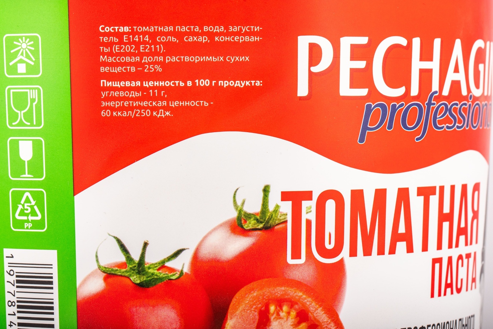 Томатная паста Pechagin Professional с содержанием сухих веществ 25% предназначена для профессионального использования.