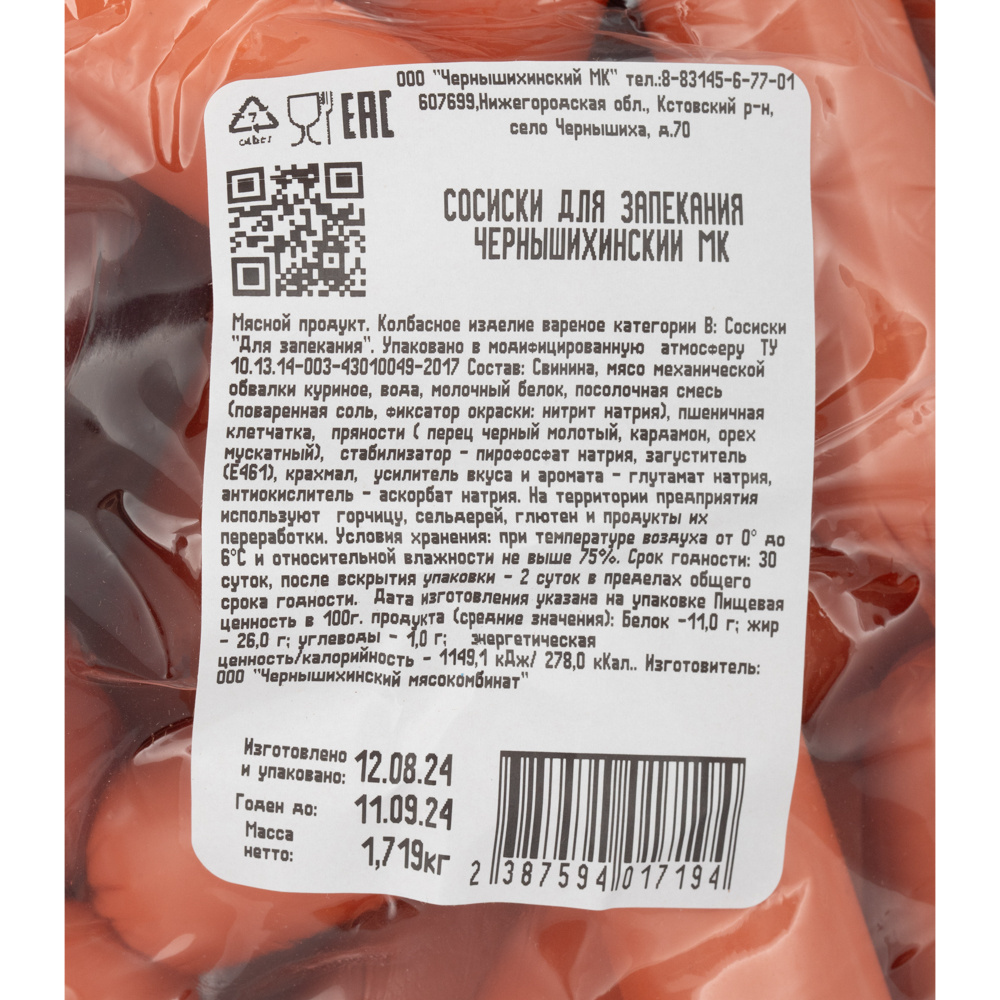 Сосиски для Запекания Чернышихинские Колбасы 55г 1,3кг
