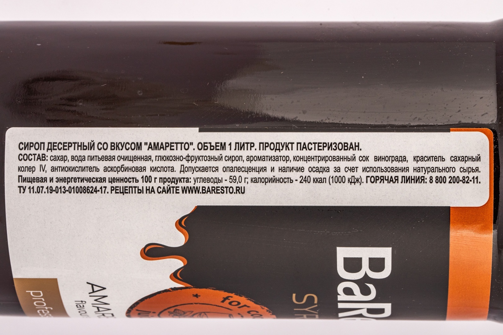 Сироп Baresto Амаретто объёмом 1 литр — отличный выбор для любителей кофейных и десертных напитков. Он придаёт насыщенный миндальный вкус и аромат. Подходит для добавления в кофе, чай, а также для приготовления коктейлей и десертов. Сироп сделает ваши напитки уникальными и подарит наслаждение каждому глотку.