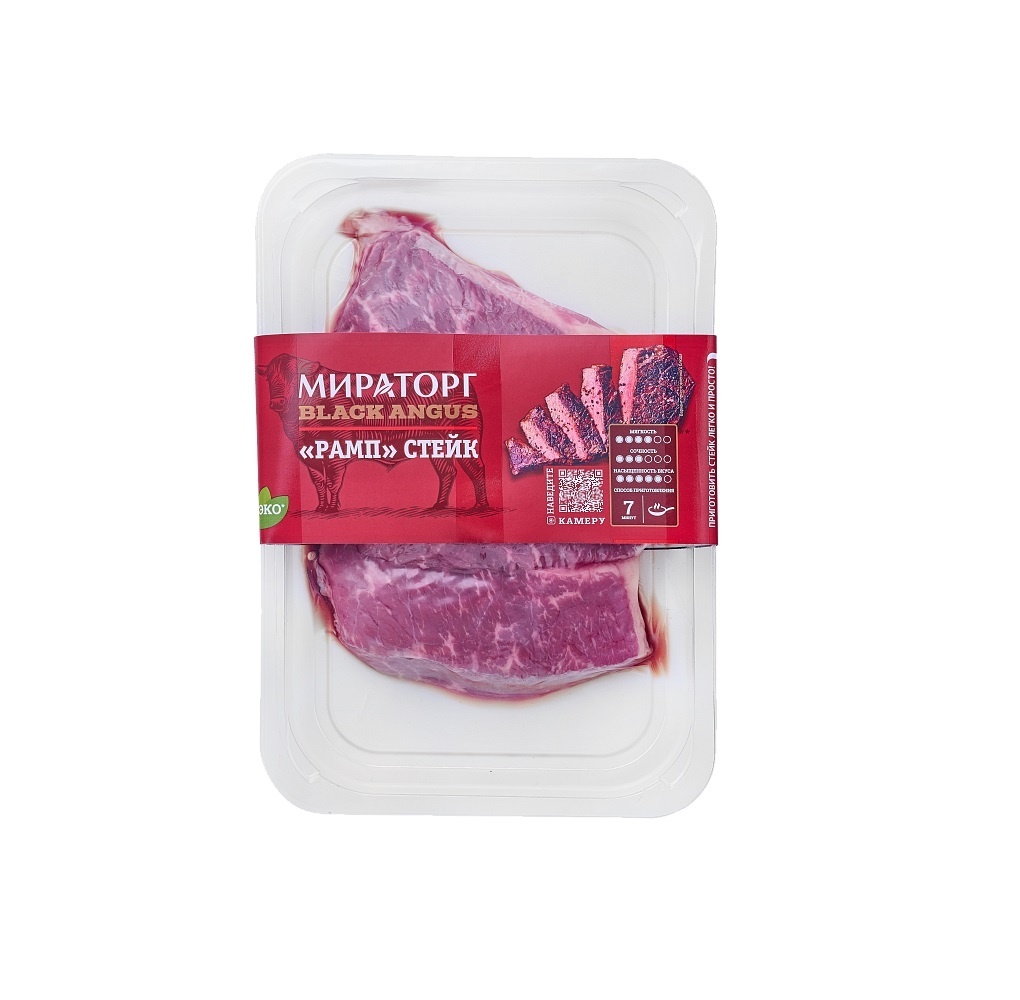 "Рамп" стейк из мраморной говядины выделяется из костреца – тазобедренная часть бычка. Входит в линейку альтернативных стейков. Достаточно постный стейк, но не жесткий за счет влажного вызревания, которое проходит отруб.