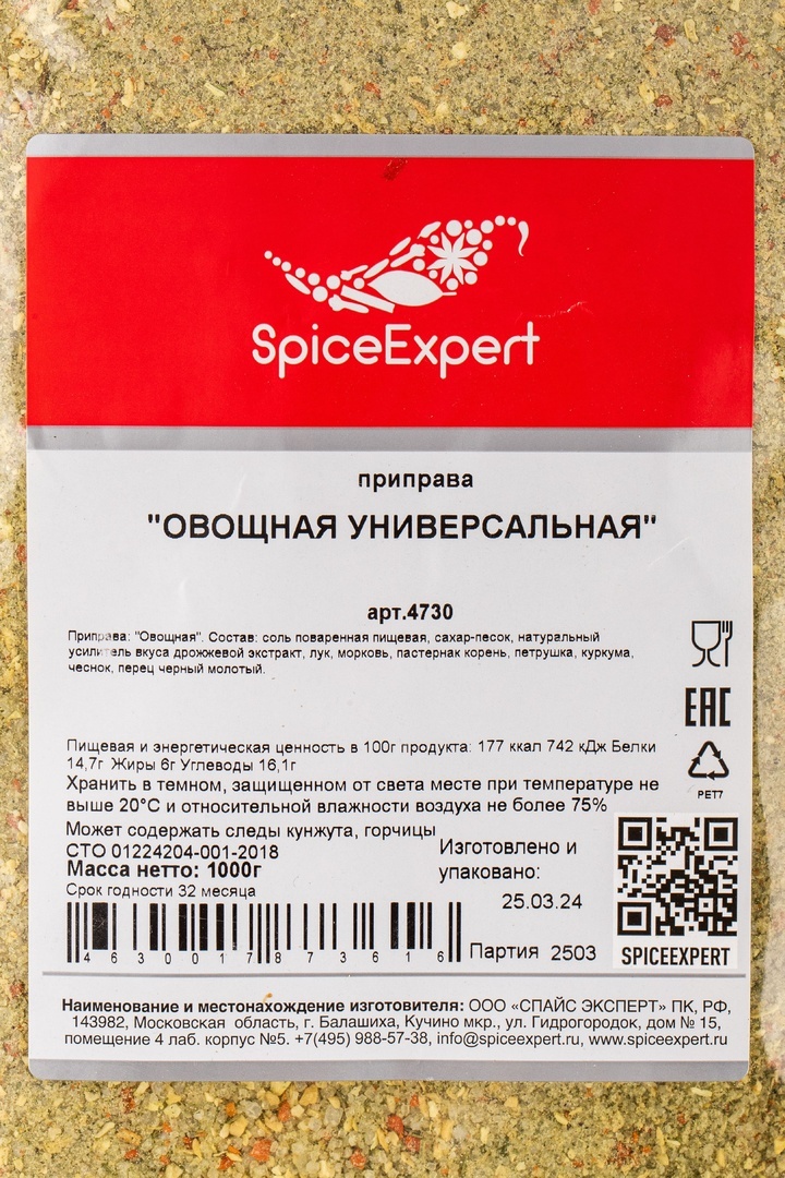 Приправа SpiceExpert Овощная Универсальная 1000г