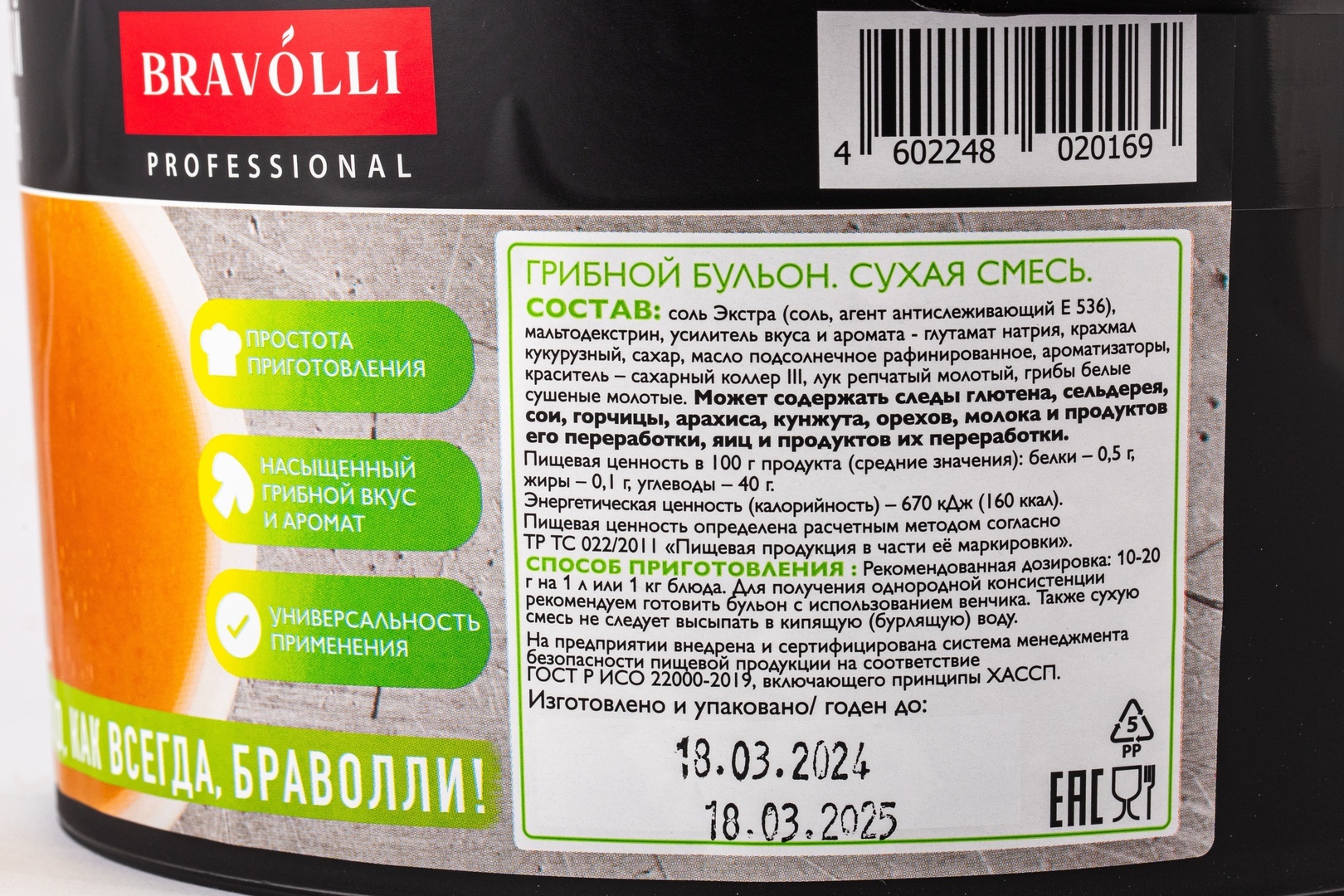 Хотите добавить насыщенный грибной вкус в свои блюда? Попробуйте бульон Bravolli Professional! Он идеально подойдёт для супов, соусов и гарниров. С ним ваши кулинарные шедевры станут ещё более ароматными и вкусными. Удобная упаковка 2кг позволяет использовать продукт для приготовления большого количества блюд.
