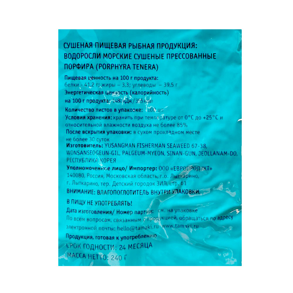 Нори подходят для приготовления первых блюд, паштетов, хот-догов, пиццы. Их используют для украшения салатов, оригинальной подачи коктейлей и десертов. Нори изготавливаются из водорослей сорта порфира в течение трех часов после сбора сырья. У нори насыщенный вкус, ровные листы темно-зеленого цвета, которые отлично смотрятся в любых блюдах. Перед применением советуем оставить упаковку открытой на 30 минут, чтобы водоросли насытились влагой.