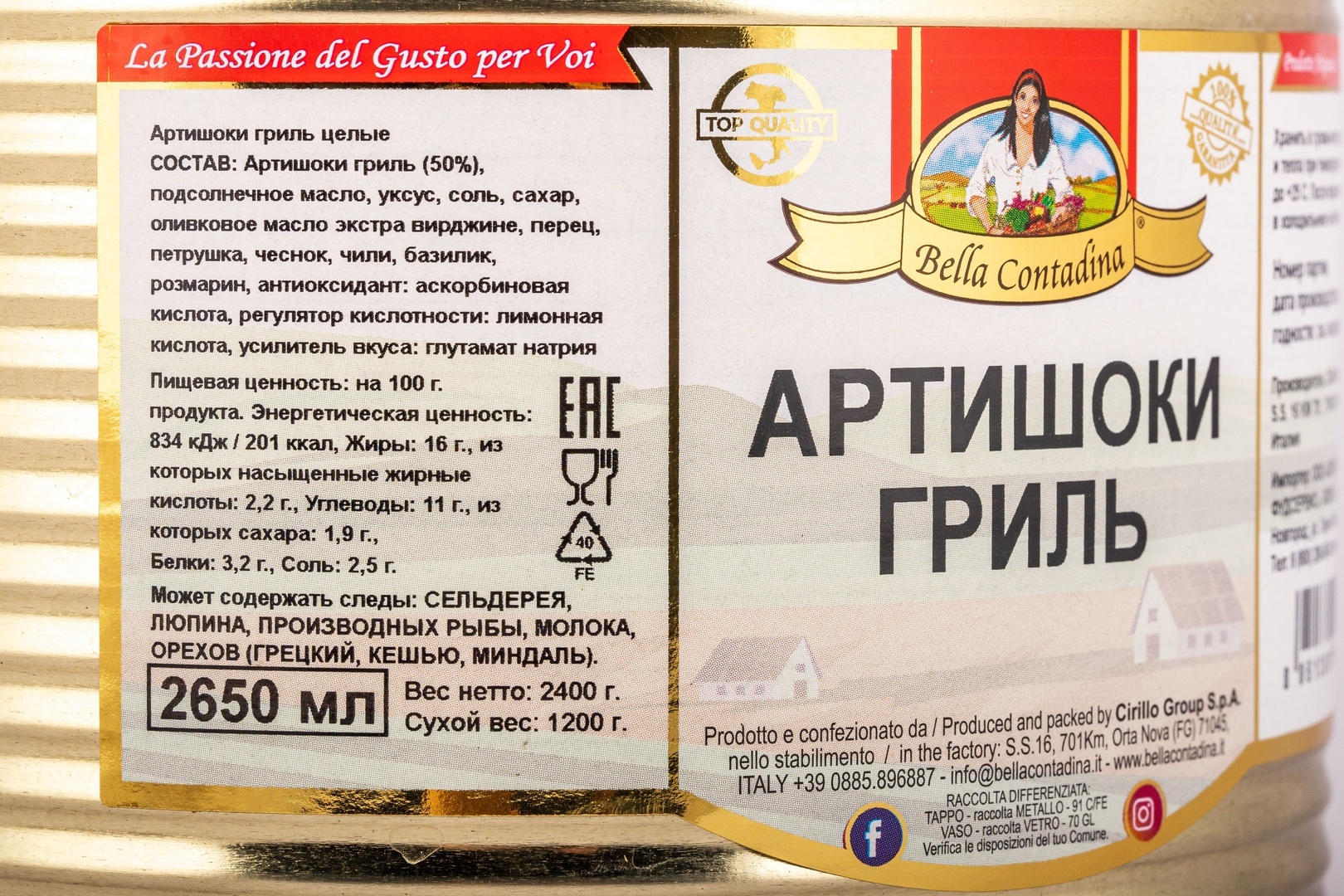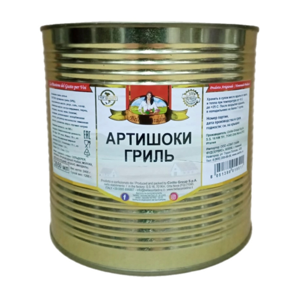 Артишоки Целые Гриль Bella Contadina 2650мл Сух. Вес 1200г
