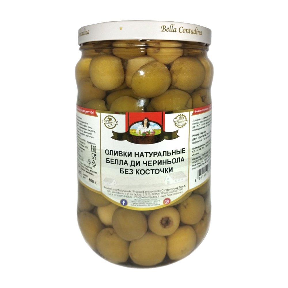 Оливки Белла Ди Чериньола Bella Contadina Гигант без Косточки 1,7л Сух. Вес 800г