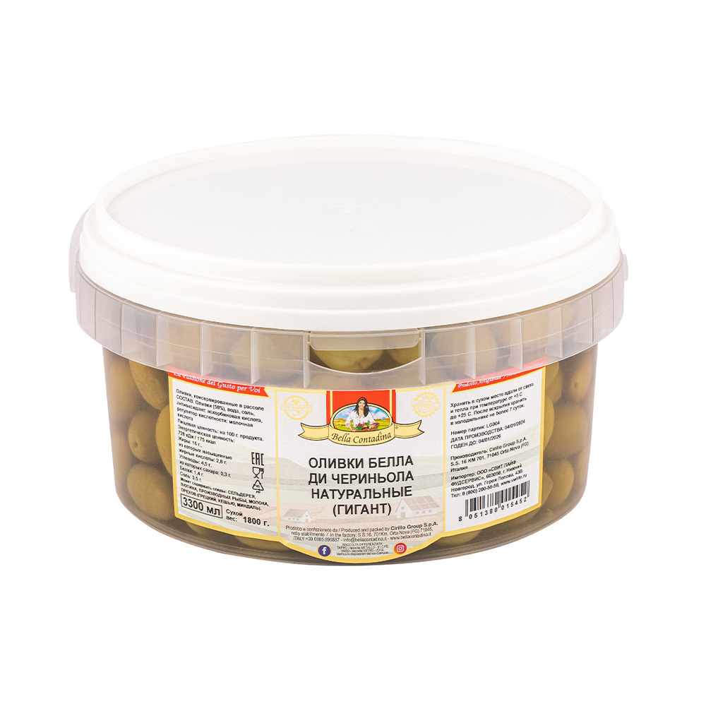Оливки Белла ди Чериньола — типичный сорт провинции Фоджа, что в регионе Апулья на юге Италии. "Красотка из Чериньолы" — так можно перевести название сорта. Гигантские оливки натурального золотисто-зеленого цвета — это одни из самых больших оливок в мире! Оливки мягкие по вкусу, но очень сочные, фруктовые и фантастически маслянистые.