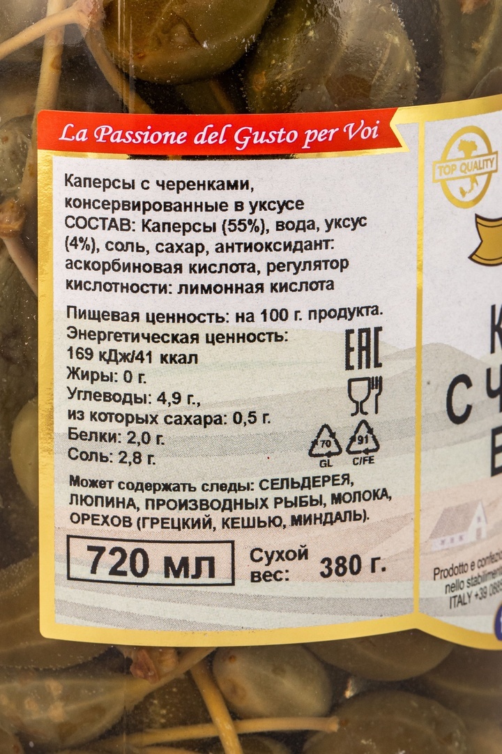Каперсы Bella Contadina с Черенками 720мл Сух. Вес 380г