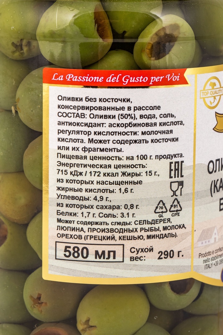 Оливки Ночеллара без Косточки Bella Contadina 580мл Сух. Вес 290г
