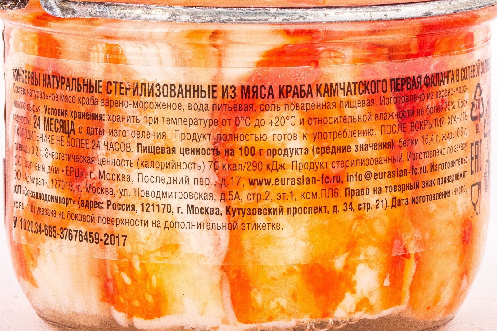 Краб Камчатский Снатка 1 Фаланга 240г Стекло