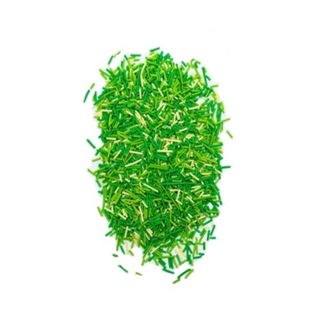 Нежный, не хрустящий продукт на основе кондитерской глазури - калиброванные гранулы продолговатой формы с глянцевой поверхностью, зелёного цвета. Применяется для декоративной отделки кондитерских и хлебобулочных изделий, десертов, мороженого и др.