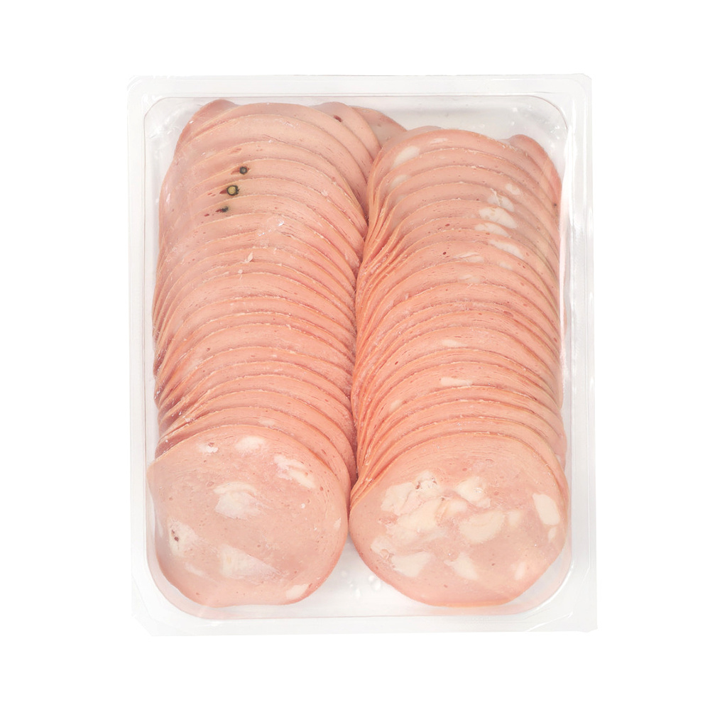 Колбаса Мортаделла-аппетитный колбасный деликатес,изготовленный из качественной свинины с натуральными пряностями.Индивидуальность вкусу придают вкрапления мягкого шпика и фисташки.Нарезанная на аккуратные слайсы Мортаделла отлично подойдет для приготовления пиццы,бутербродов.сэндвичей и салатов.