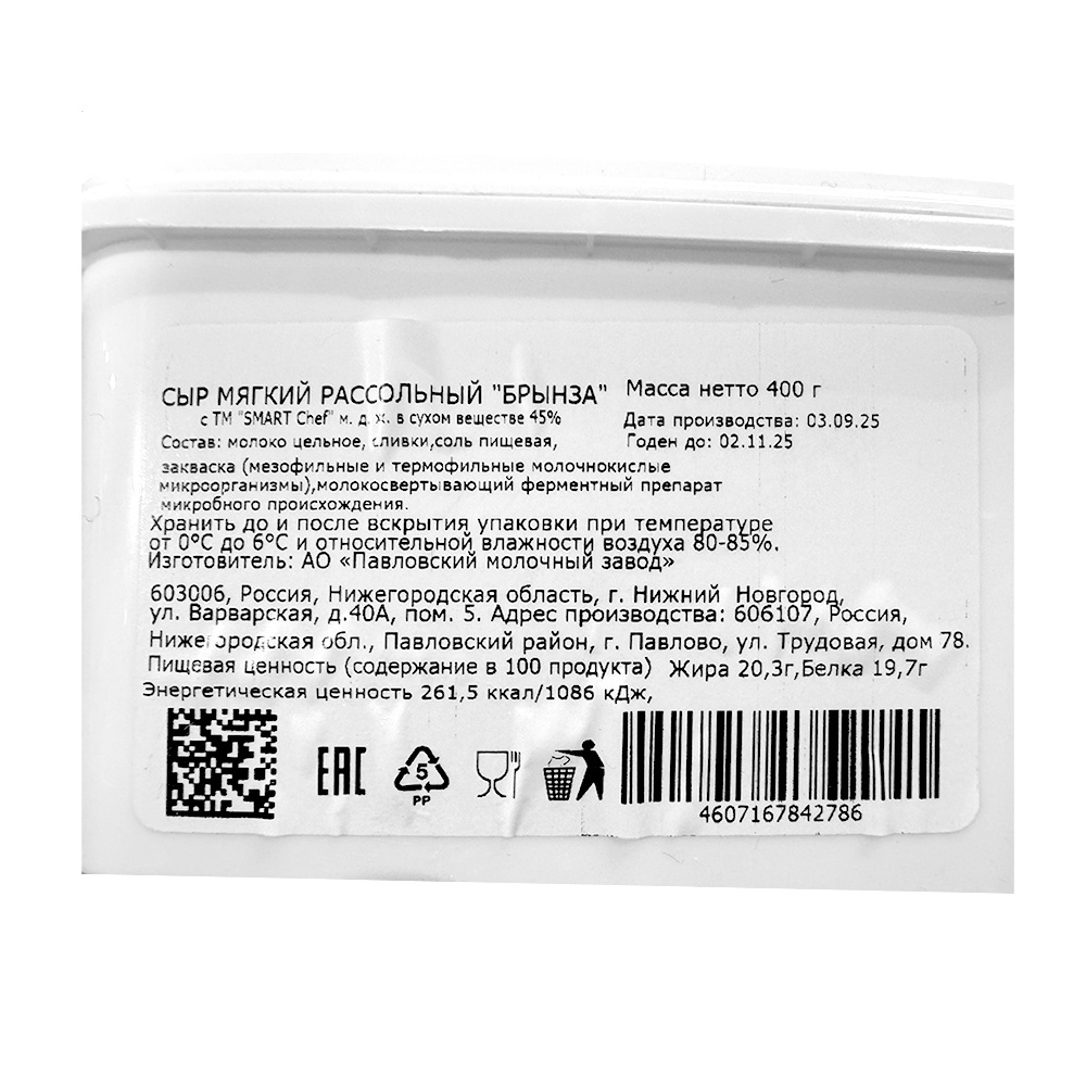 20.11.2025Не особо зашло. Мягкая структура, напоминающая творожный сыр. Совсем не сербская брынза для греческого салата.