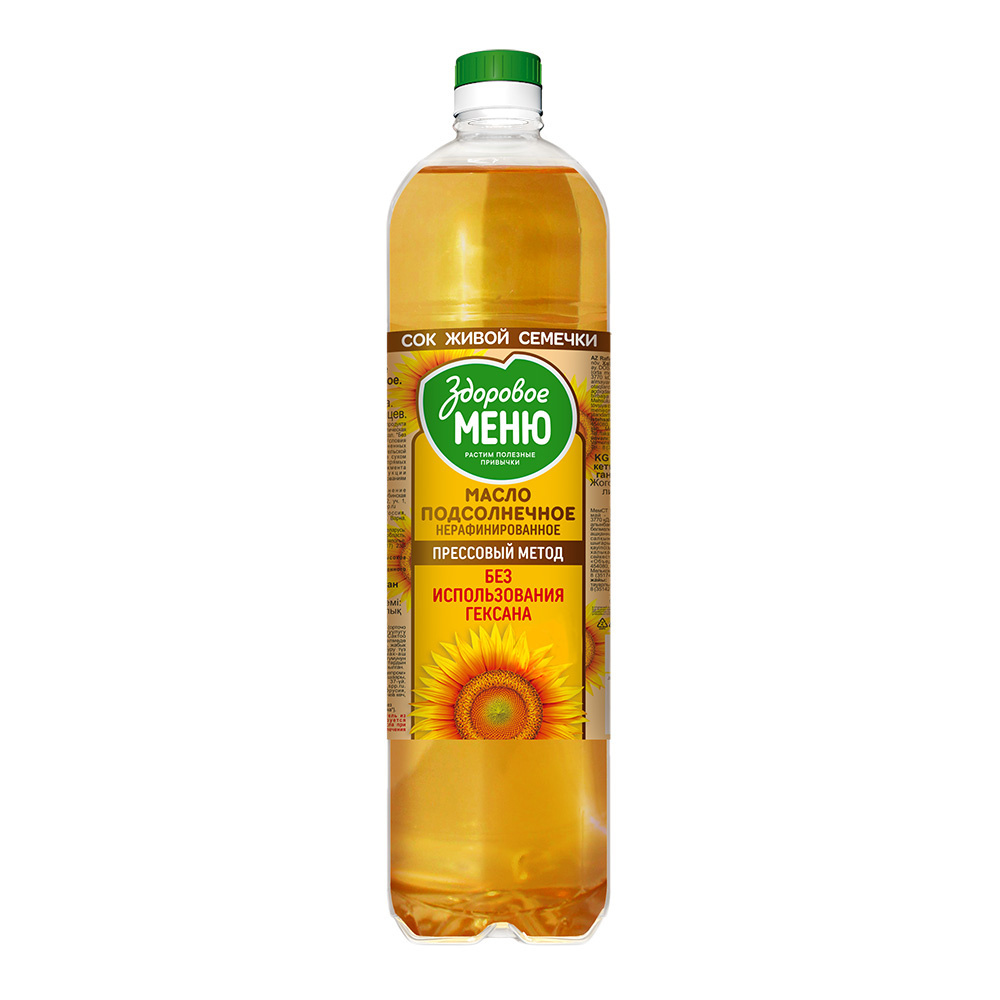 Идеально для жарки и заправки салатов — нерафинированное подсолнечное масло Здоровое меню. Оно сохраняет естественный вкус и аромат, придаёт блюдам насыщенный вкус и пользу. Объём 900мл подойдёт для любой кухни.