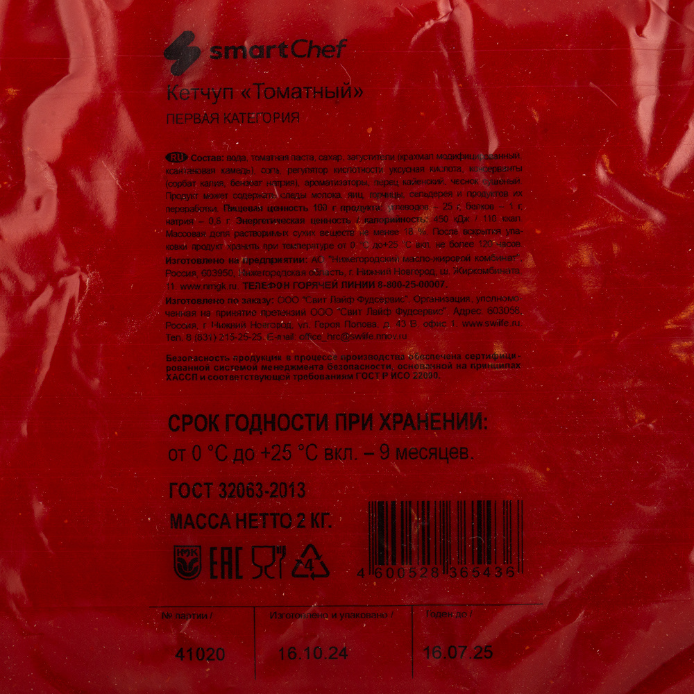 Густой томатный кетчуп для HoReCa. Подходит для заправок, соусов и подачи к горячим блюдам. Удобный формат для кухни с большим потоком.