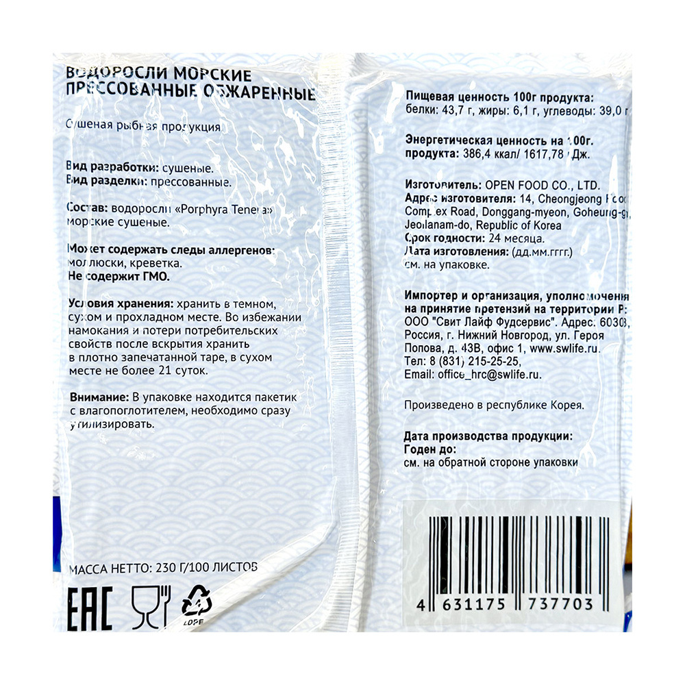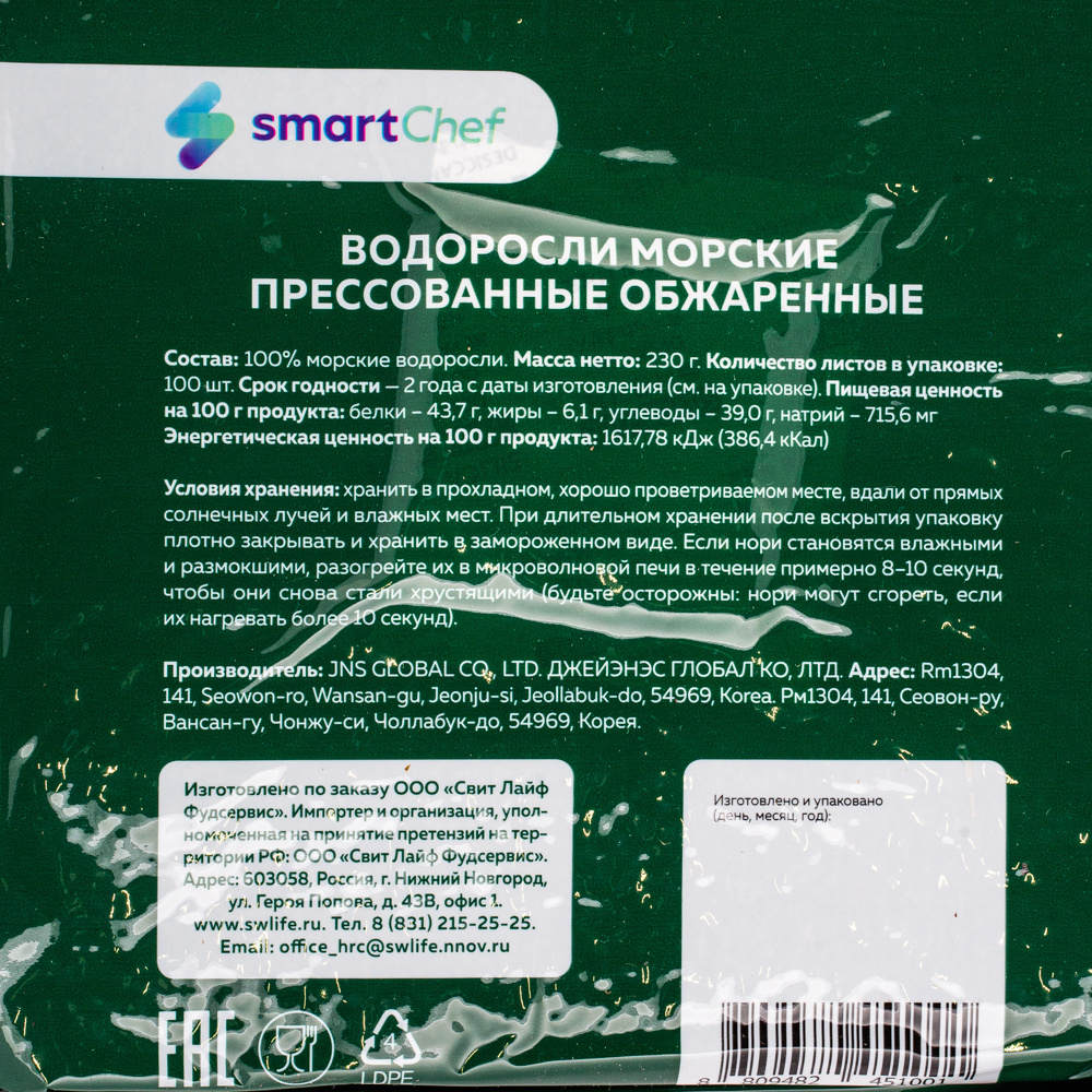 Водоросли Нори Smart Chef Жареные Корея 100 Листов
