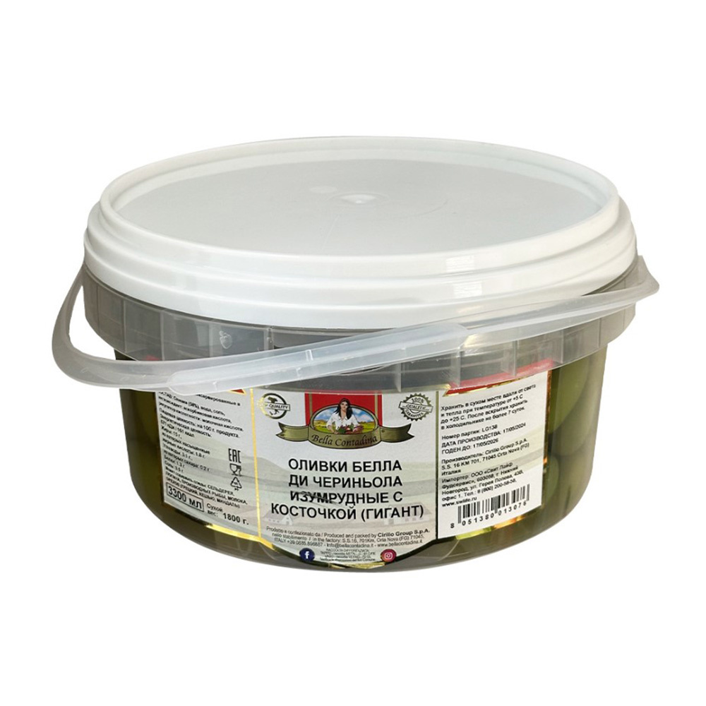 Оливки Белла Ди Чериньола Изумрудные с Косточкой 3,3л Сухой Вес 1,8кг