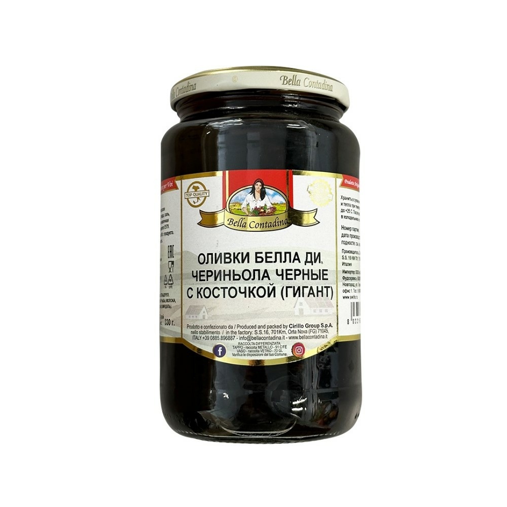 Оливки Белла Ди Чериньола Черные с Косточкой 580мл Сух. Вес 330г