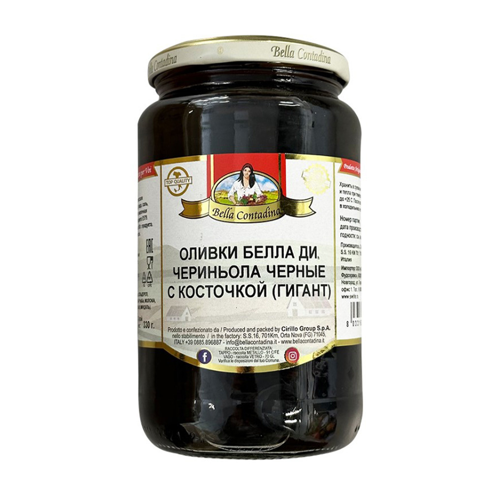 Оливки Белла Ди Чериньола Черные с Косточкой 580мл Сухой Вес 330г