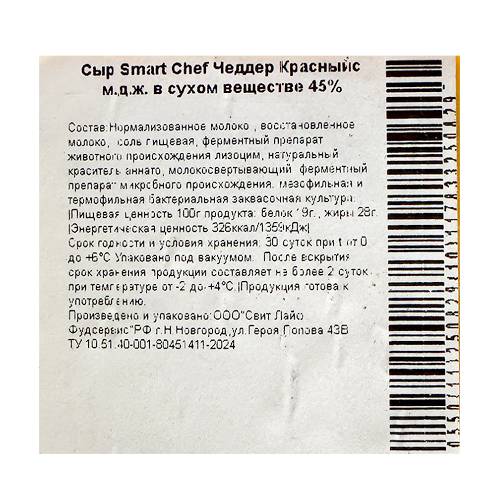 Сыр Smart Chef Чеддер Красный 45% 500г