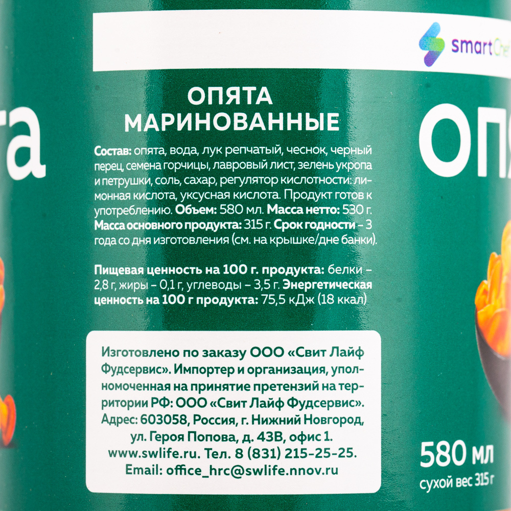 Опята Smart Chef Маринованные 580мл Сух. Вес 315г Стекло