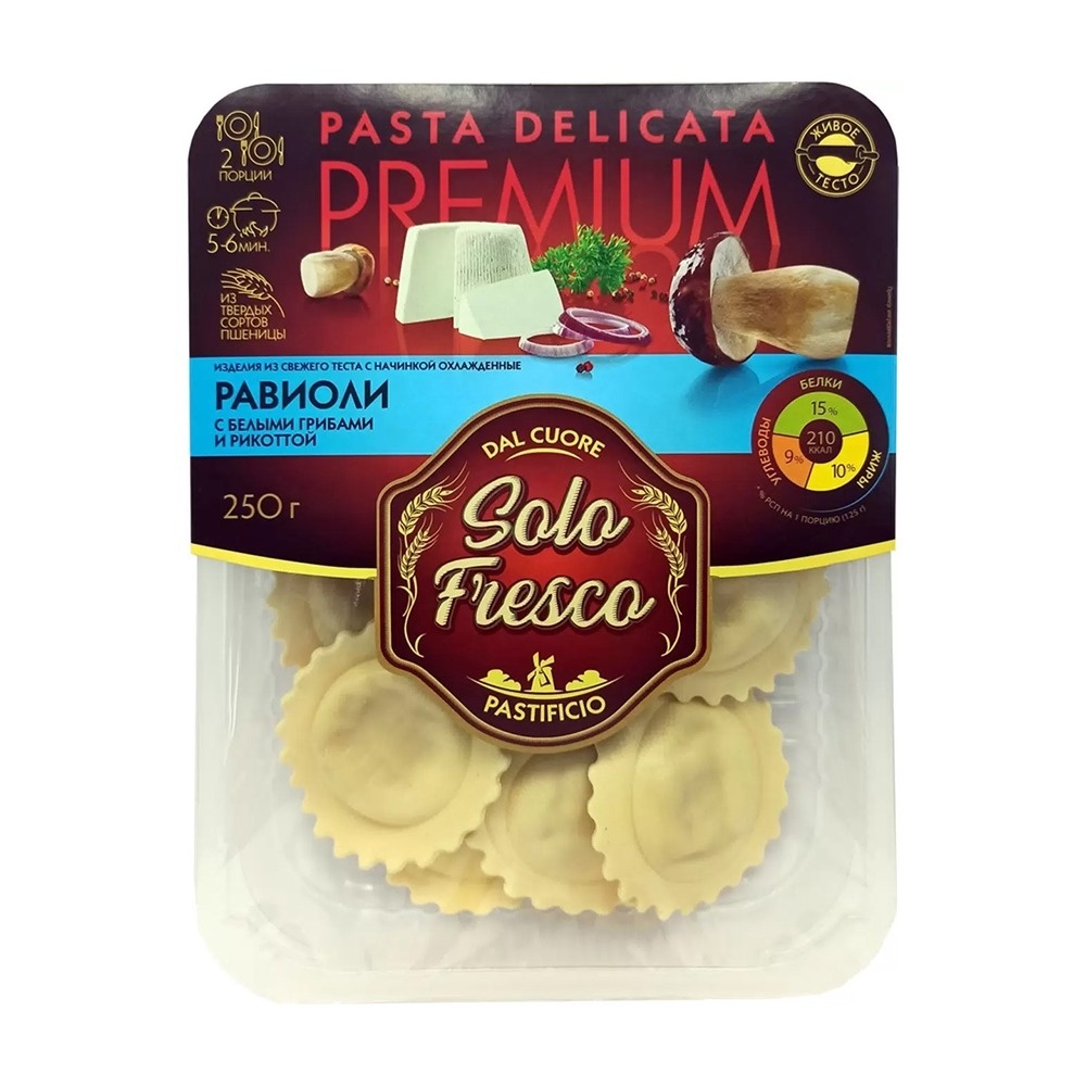 Равиоли Solo Fresco с Белыми Грибами и Рикоттой 250г