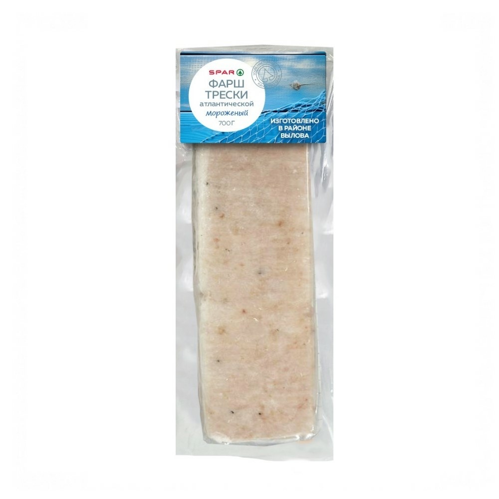 Фарш трески свежемороженый блочный - двойная прозрачная вакуумная упаковка - видно содержимое. Однократная заморозка, без глазури. При правильном размораживании - минимум (практически нет) жидкости. Без костей.