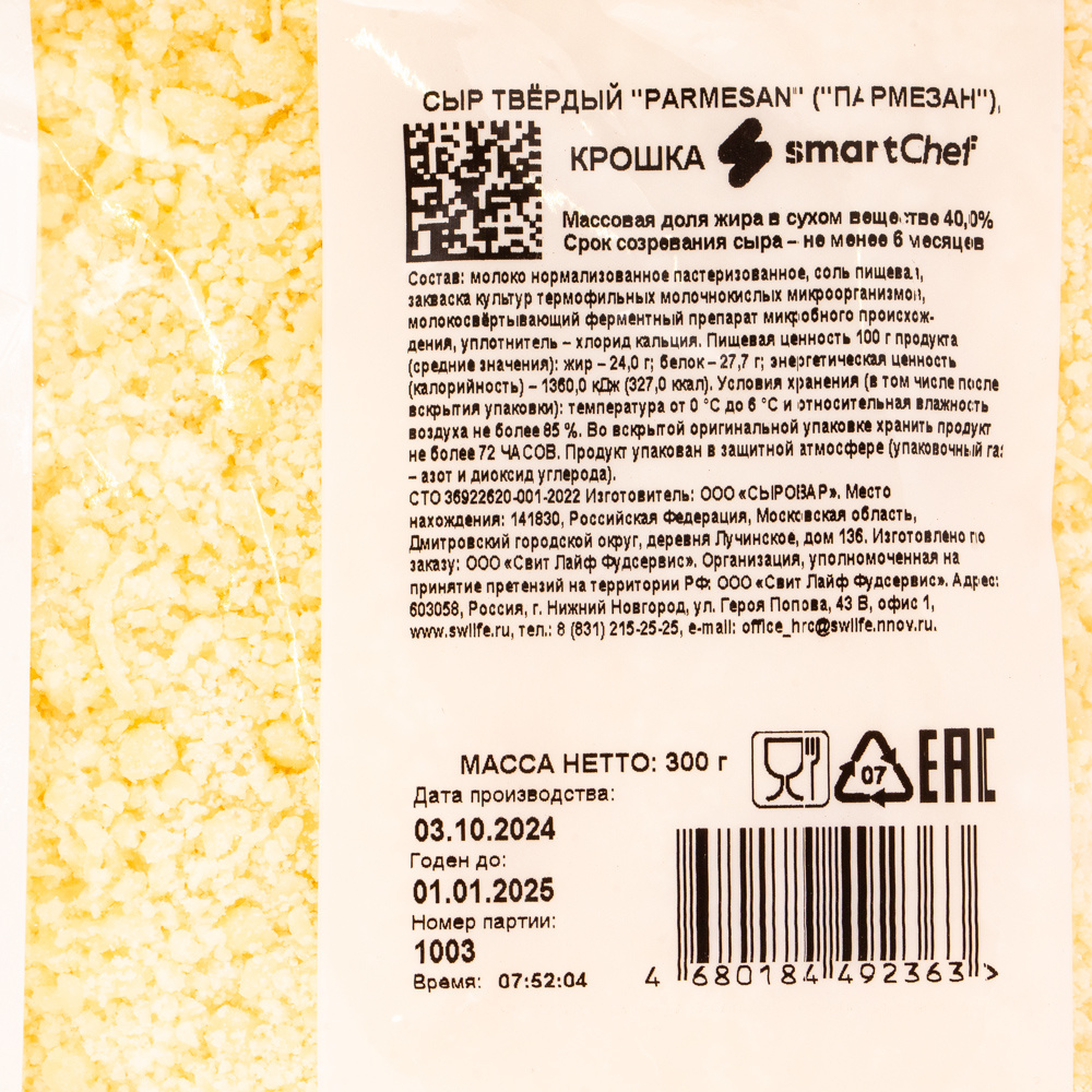 Готовая крошка — ускоряет подачу и финальную посыпку. Яркий выдержанный вкус подчёркивает пасты, ризотто и супы. Удобен для порционного контроля.