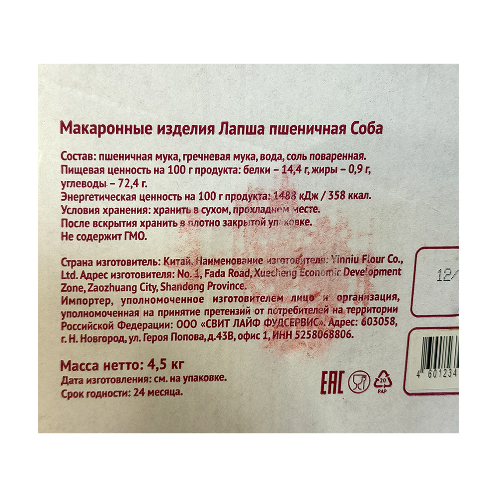 Лапша Соба Smart Chef Китай 4,5кг