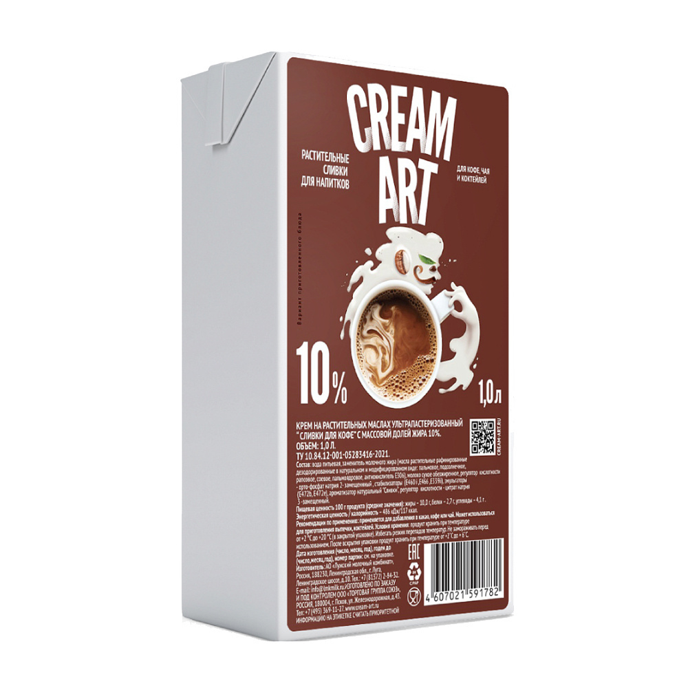 Крем на Растительных Маслах Cream Art Сливки для Кофе 10% 1л