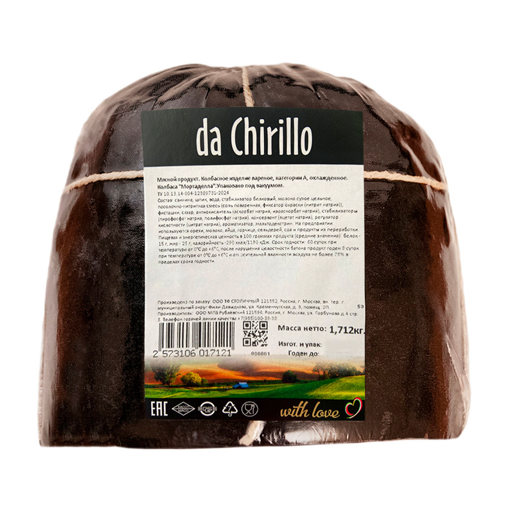Колбаса Вареная Da Chirillo Мортаделла 1/2 Батона 1,7кг в/у