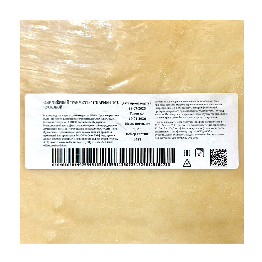Сыр Твердый Smart Chef Парменте 12 Месяцев 48% 1-1,5кг
