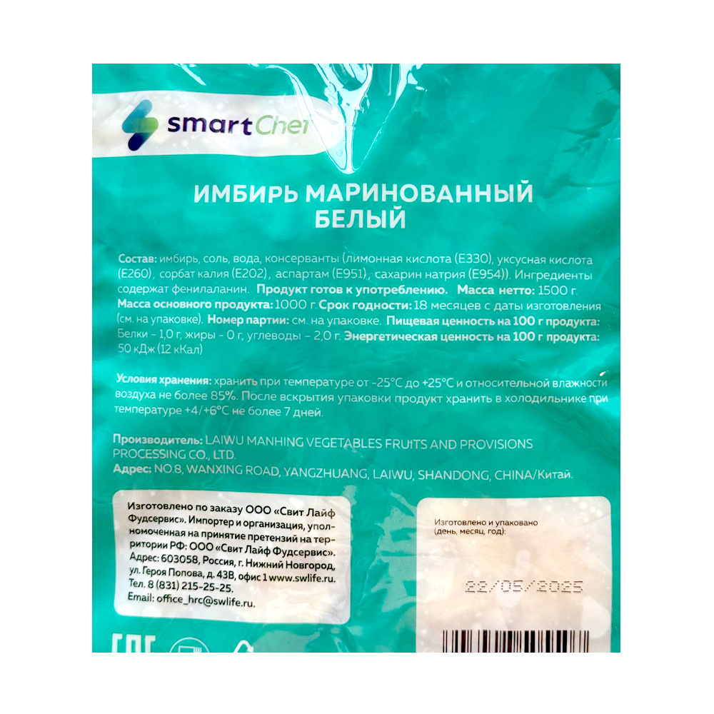 Имбирь Белый Smart Chef Маринованный Класс А 1,5кг