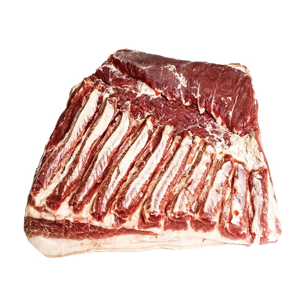 Нежная свиная грудинка без кости грудореберного отдела туши — универсальный выбор для приготовления самых разных блюд. Она идеально подойдёт для запекания, жарки, копчения и для различных заготовок, например, бекона или панчетты.