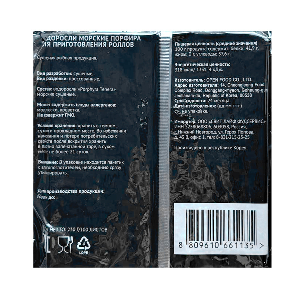 Водоросли Нори Premium Fujin Корея 100 Листов