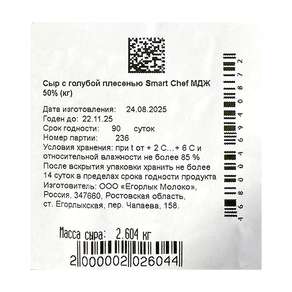 Сыр Smart Chef с Голубой Плесенью 50% 2,3кг