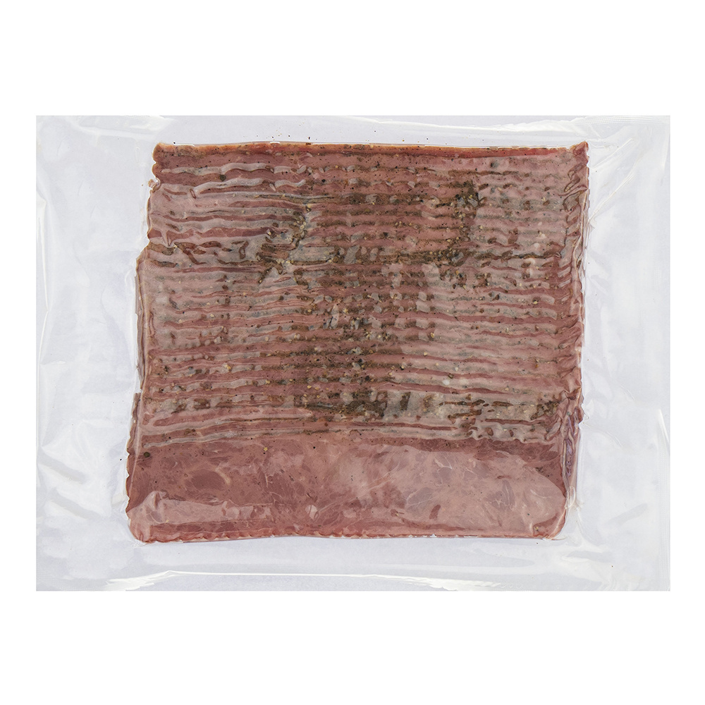 Нежная и ароматная нарезка из говядины со специями Пастрами — идеальный выбор для создания изысканных закусок. Этот деликатес станет настоящим украшением вашего стола и подойдёт для приготовления сэндвичей, бургеров или салатов.