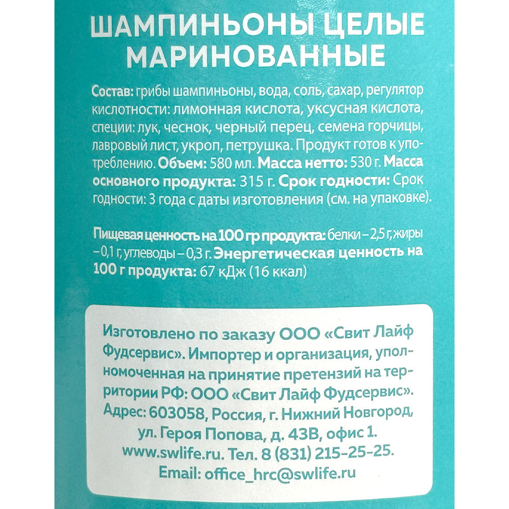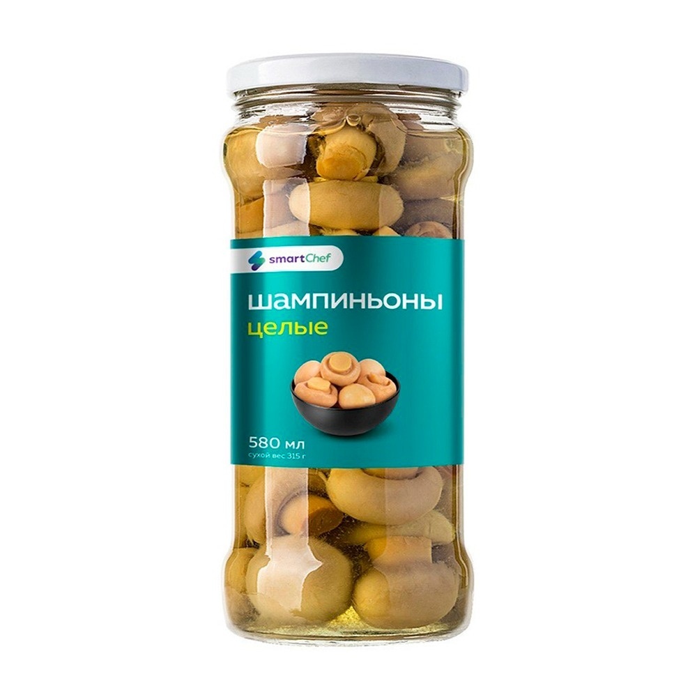 Шампиньоны Smart Chef Целые Маринованные Китай 580мл Сух. Вес 315г ст/б