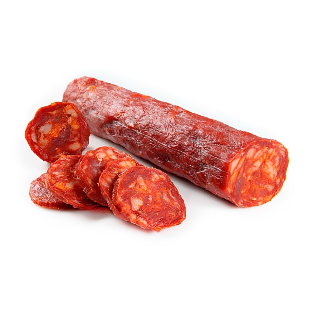 Чоризо – это восхитительный мясной деликатес с ярким букетом пряностей в аромате. На вкус колбаса слегка остренькая, обладает нежной текстурой и отличается аппетитным срезом с небольшими вкраплениями шпика. Идеальна для праздничного стола, приготовления холодных закусок и пиццы.