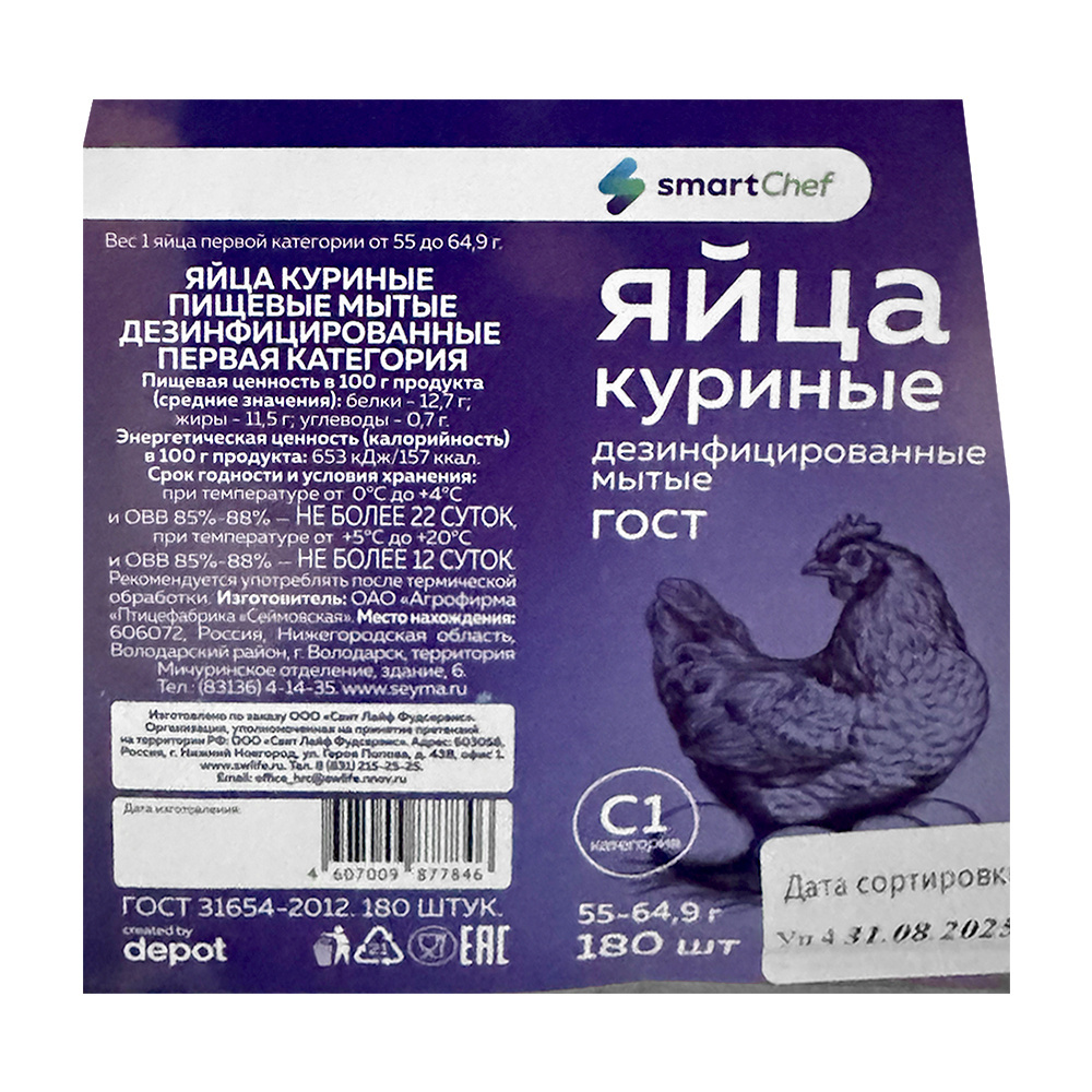 Яйцо Куриное Smart Chef Дезинфицированное Мытое C1 180шт