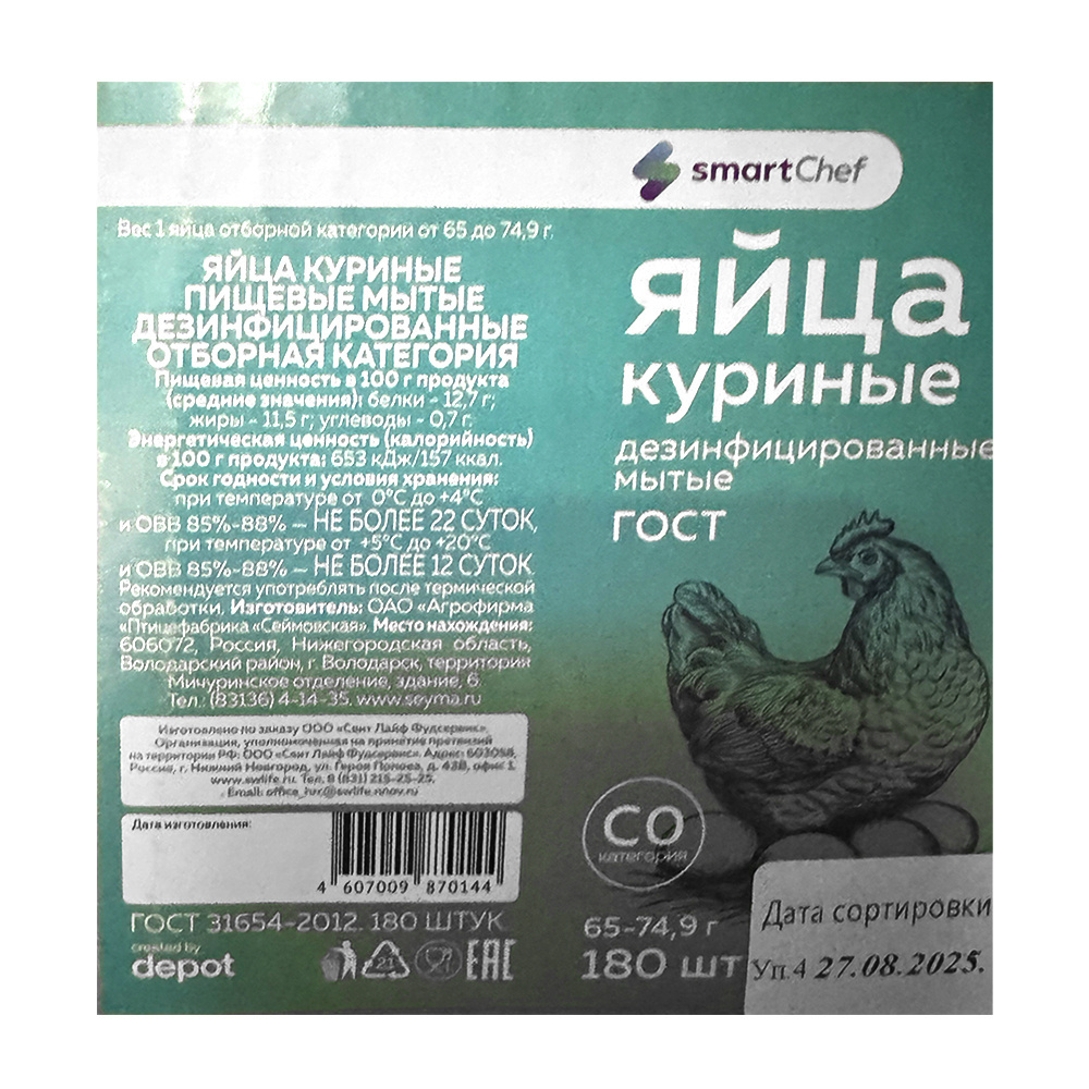 Яйцо Куриное Smart Chef Дезинфицированное Мытое C0 180шт