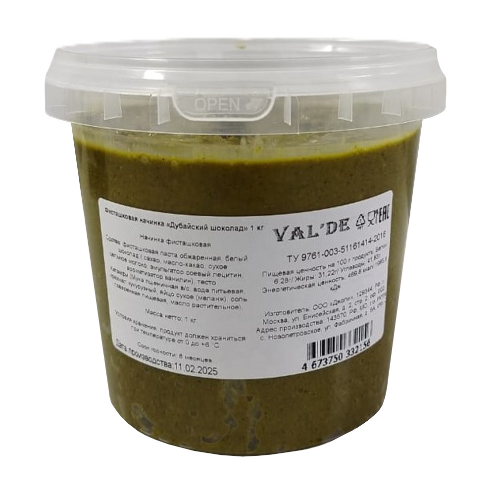 Фисташковая начинка Valde — идеальный выбор для создания уникальных вкусовых сочетаний в дубайском шоколаде. Благодаря универсальности, фисташковая паста для дубайского шоколада применяется не только в десертах, но и в премиальных конфетах и выпечке.